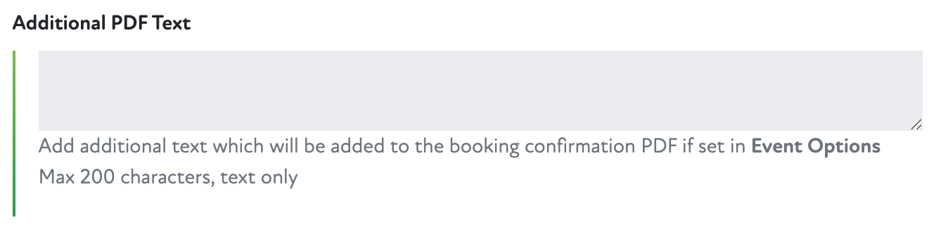 NOTE: Whilst the confirmation PDF can be customised per client, the PDF cannot be customised per event, rather it is a global PDF.