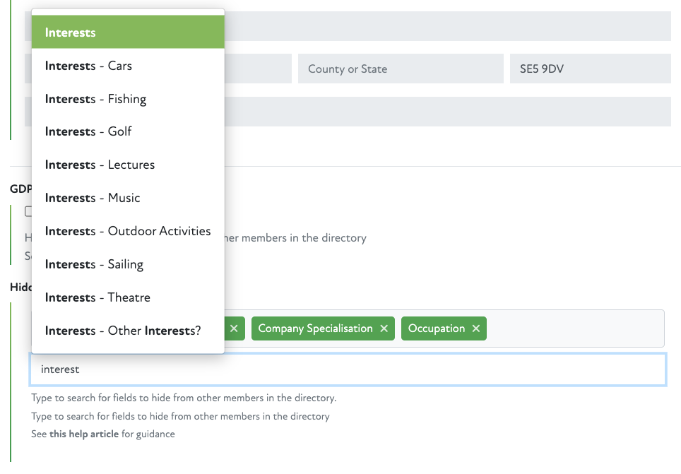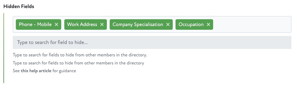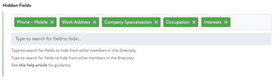 Hidden fields will be greyed out and have Private against them, and these will not be shown to other members when they view the members profile.
