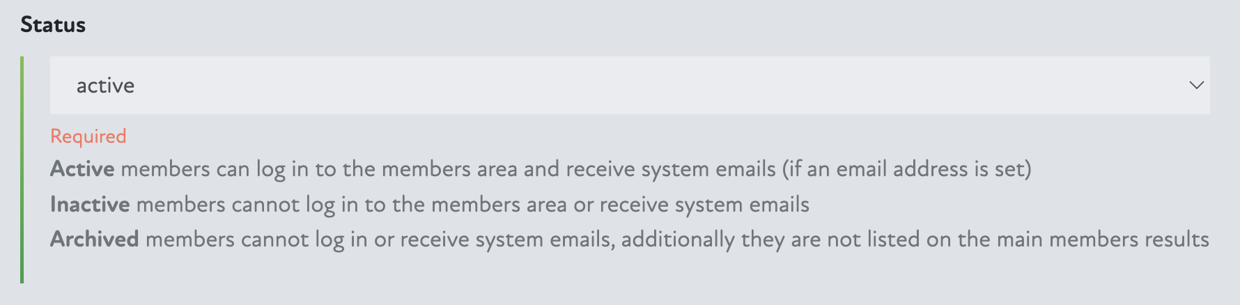 Having a Status of active also allows a member to log in to the members area.