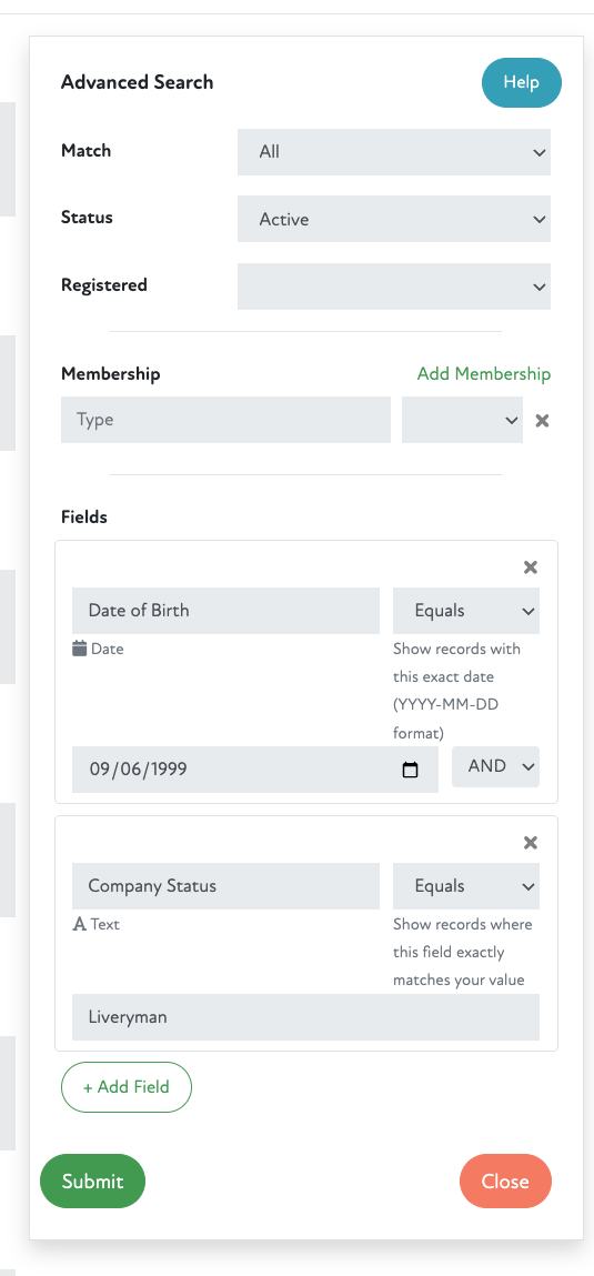 Additionally, the logic for multiple fields has been updated such that AND or OR options can be used, separate from the Match All or Any option, which controls the Status and Registered options.
