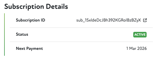 Additional information is also shown for the Stripe subscription, with a link to it.