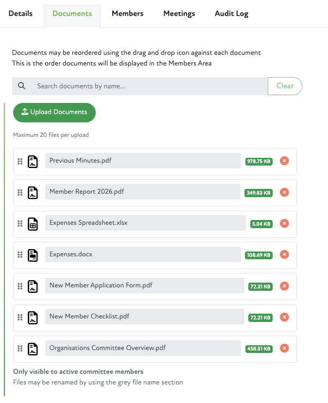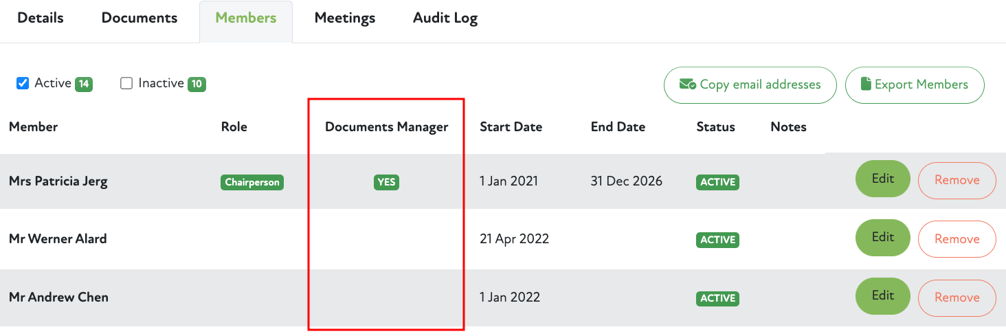 Committee members may now be given a document management role, which allows them to manage the committee and meeting documents in the same way that is done in the Admin Portal.