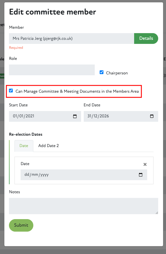When creating or editing a member there is a new Can Manage Committee & Meeting Documents in the Members Area checkbox.