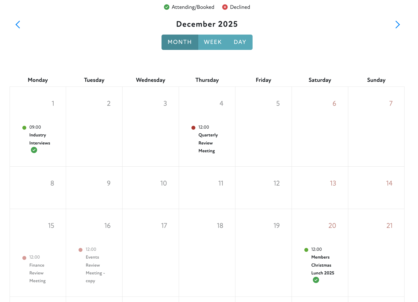 Added icons against events and meetings to show whether the member is attending or has declined the event/meeting.