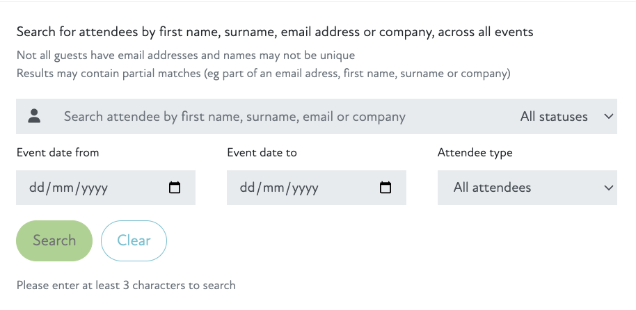 Added member and attendee name filters to the Bookings, Attendees and Invited List tabs.