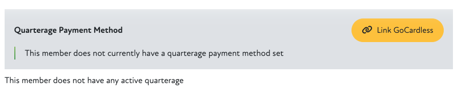 For those clients with GoCardless as a payment method, there is now an option on the Membership/Quarterage tab against a member to link their customer record and mandate (if they exist in GoCardless).