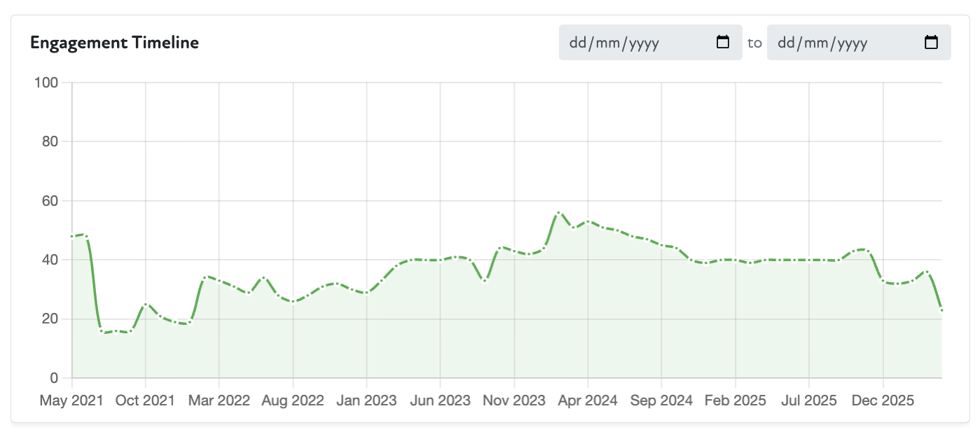 - Whether they're becoming more or less engaged - the trend indicator and timeline chart show the direction of travel